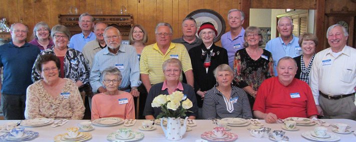 A beautiful spring day greeted 21 attendees at the California regional meeting, held Saturday, April 6. Everyone gathered in the morning for coffee and homemade coffee cake and muffins at the home of Mimi and Ed. Sales were brisk at the sales tables, burgeoning with Shelley. Mimi and Ed's collections were lovely to behold, and guests were enchanted with the photos of their large and beautiful family, 32 grandchildren and counting. Of particular note was the table Mimi set with five-piece place settings of no less than 16 different Shelley patterns, representing the many dinner sets owned by Mimi and Ed and their offspring. They are long -time Shelley collectors, and their cabinets hold many rare and interesting pieces of Shelley.