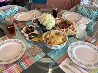 11 members of the Florida Region met for lunch Saturday April 2 at Mike and Lynn’s home in Nokomis. Lunch was served on two different patterns of Shelley, Campanula and Serenity. Ken brought several items to show including an unusual Walter Slater straight sided vase. Two new members, Pam and Alan attended their first regional. We are all grateful for the opportunity to finally be able to meet in person, swap stories and share our love of Shelley.